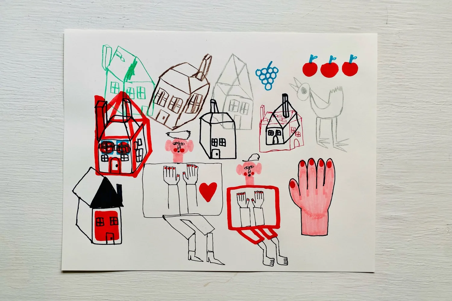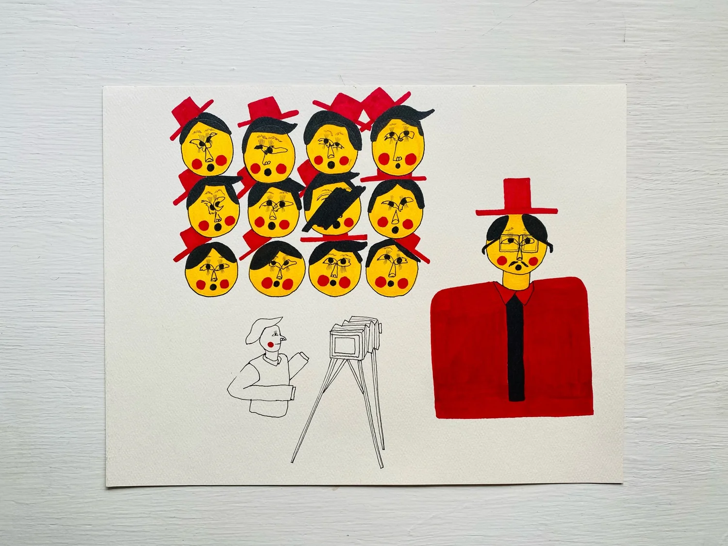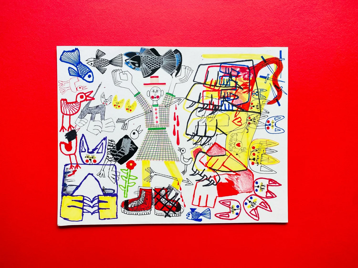“ Una tortuga y una serpiente cargan a un hombre lastimado por lluvia proveniente de una nube de genitales. Las gotas se sienten como clavos”